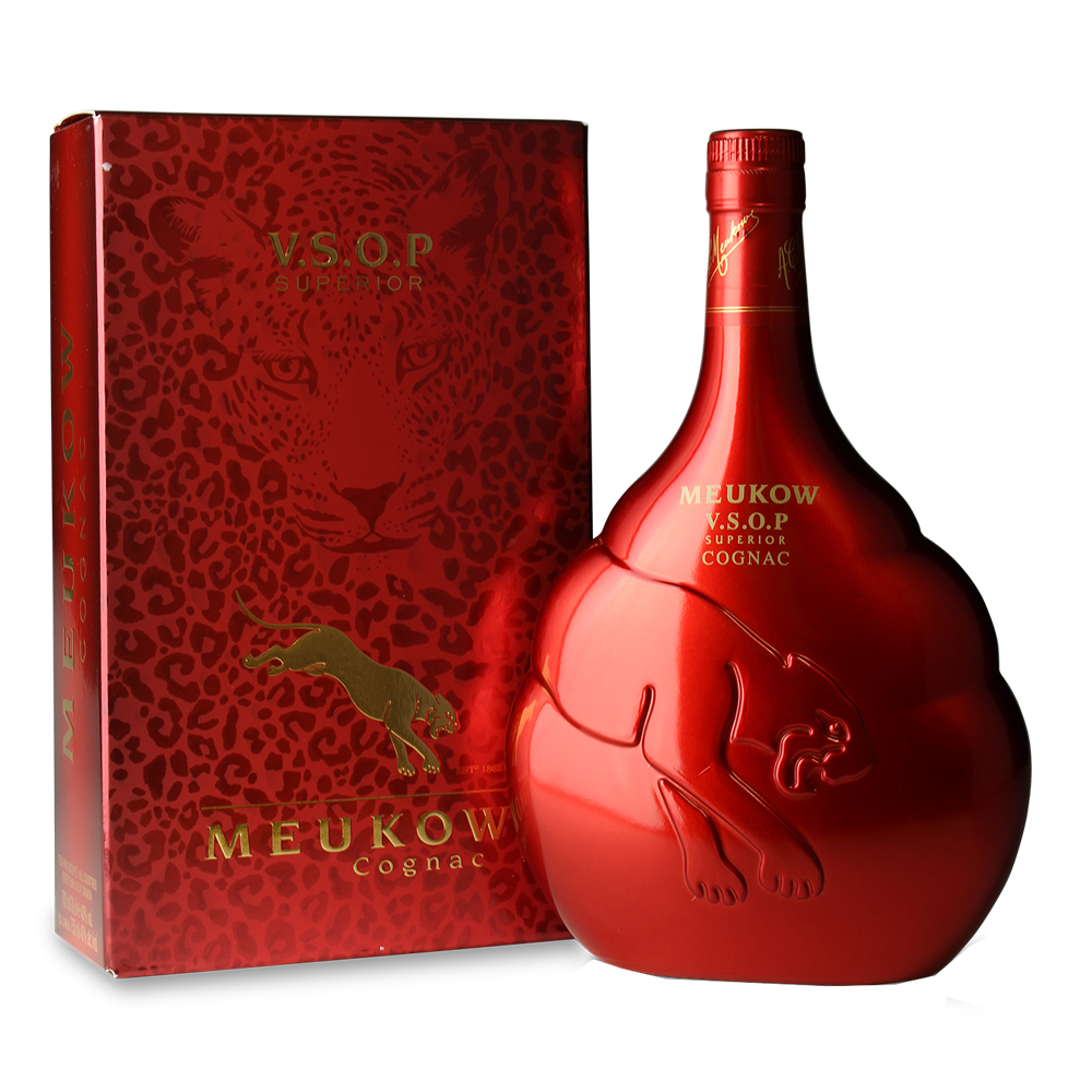 Cu o istorie inceputa in anul 1862 Coniacul Meukow dovedeste faptul ca nu este o intamplarea calitatea, ci o obisnuita. Calitatea pe primul loc, de la strugurii folositi pana la butoaiele alese, au facut din Meukow un coniac premium ce poate fi servit la cele mai importante evenimente. Sticla “Felina” ,reprezentativa pentru un Coniac Meukow a fost conceputa in anul 1993. Aceasta sticla are reprezentata pe ea o pantera ce ulterior a devenit simbolul brandului. Felina superba simbolizeaza perfect puterea, eleganta si adaptabilitatea unui Coniac Meukow. Meukow Cognac este alegerea perfecta atat pentru o petrecere in gradina din curte cat si pentru a sarbatori un eveniment important intr-o companie selecta. Meokow VS, VSOP sunt excelente in cocktailuri iar variantele XO si XO Grande sunt recomandate a fi savurate individual.