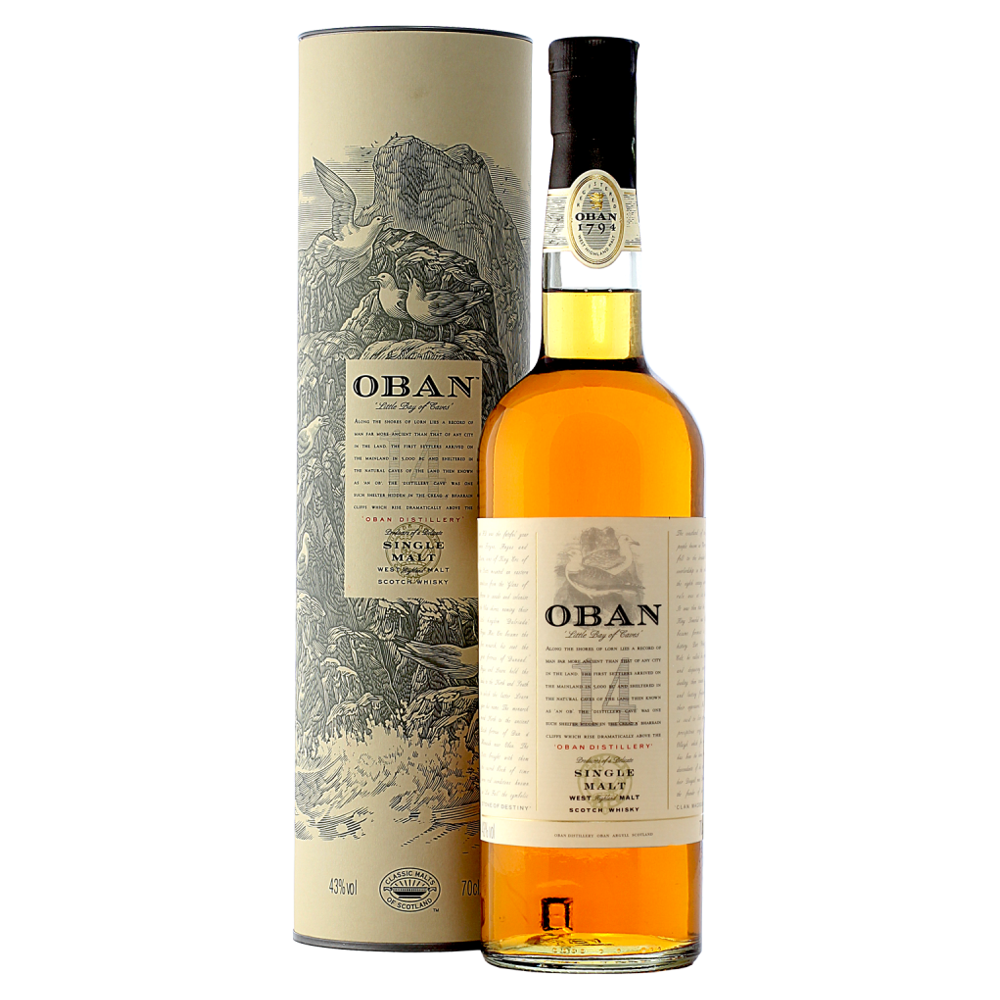 Una dintre cele mai mici distilerii din Scotia, Oban a fost infiintata in 1794 iar in prezent lucreaza in cadrul ei doar 7 angajati. Indiferent de succesul care a evoluat de la an la an distileria se afla in aceiasi locatie ca la inceput si nu a fost extinsa niciodata. Aflata la 208 pasi de mare, “oban” in gaelica inseamna ”micul golf”. Reteta folosita este cea din 1794 foarte putin adaptata. Productia de Whisky Oban nu este la capacitate maxima deoarece acestia vor sa isi pastreze calitatea si sa poata monitoriza atent fiecare detaliu si actiune ce are loc in interiorul distileriei.